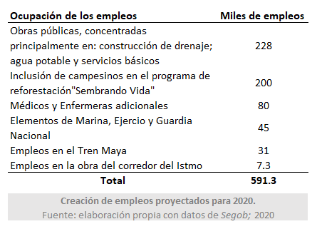 Es decir, se esperaba que el gobierno crease poco más de 591 mil empleos en todo el año, utilizando toda la infraestructura de proyectos actuales con los que cuenta el gobierno. Ayer se anunció la creación de 2 millones de empleos, pero lo que faltó establecer en dónde y cómo se crearán los 1.4 millones de empleos que hacen falta.